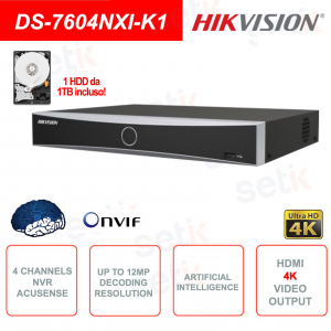 Hikvision AcuSense 4-Kanal ONVIF® IP NVR – Künstliche Intelligenz – BIS zu 12 MP – 1 TB Festplatte im Lieferumfang enthalten!