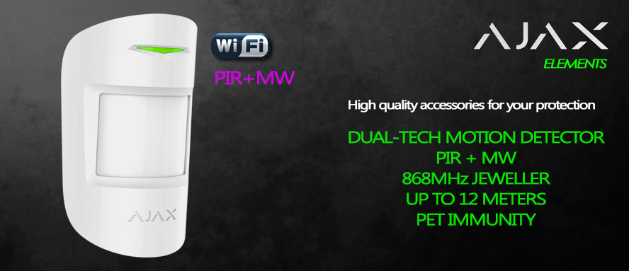 38198.02.WH1 # 38198 | Ajax MotionProtect Plus Jeweller in white is a high-precision wireless motion detector that combines a PIR sensor and a K-band microwave to ensure effective detection up to 12 meters , with an 88.5° coverage angle. Thanks to the SmartDetect algorithm and pet immunity up to 20 kg, it drastically reduces false alarms even in complex environments. Jeweller radio technology ensures encrypted communications up to 1,200 meters , with tamper protection and jamming detection. Designed to operate in any conditions, it integrates temperature compensation and three adjustable sensitivity levels. Installation is simple thanks to the SmartBracket support and configuration via the app, with a battery life of up to 5 years. Ajax