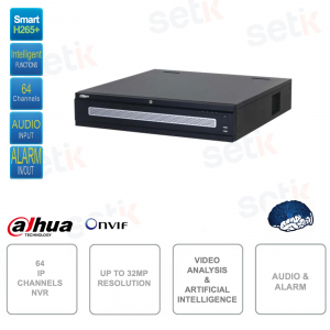 ONVIF IP NVR - 64 canaux - Jusqu'à 32MP 8K - Analyse vidéo et intelligence artificielle - Audio - Alarme