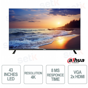 Moniteur LED 43 pouces - 4K 16:9 - 8 MS - VGA - HDMI - USB - 24h/24 et 7j/7 - DAHUA - LM43-F400