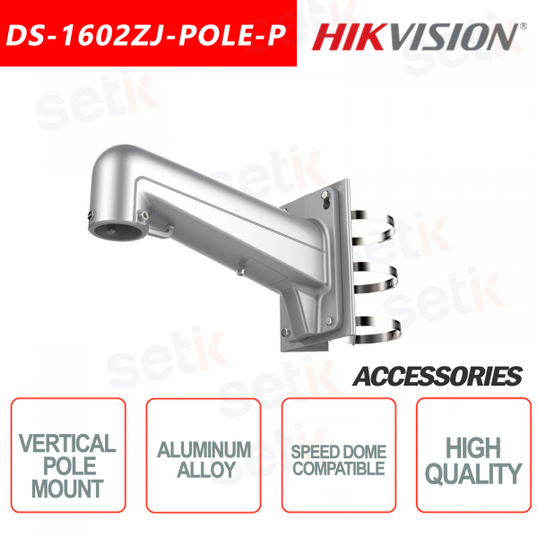 Supporto verticale a palo per Speed Dome Hikvision DS-1602ZJ-POLE-P . Lega di alluminio con trattamento superficiale a spruzzo, Colore Grigio platino, Supporto Verticale a palo.